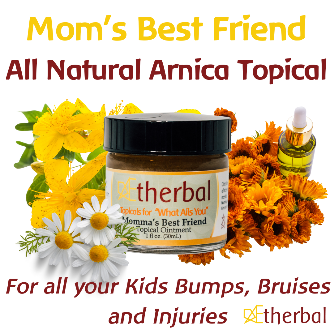 Mom’s Best Friend was created as a household essential for bruises, bumps, and the everyday “booboos” that kids (and adults) experience. Unlike many commercial Arnica creams, this formula is 100% naturally derived and organic, free of synthetic fillers or petroleum bases. It combines Arnica, St. John’s Wort, Plantain, Aloe, and essential oils with Ætherbal’s patent-pending Orthosilicic Acid foundation for superior delivery.